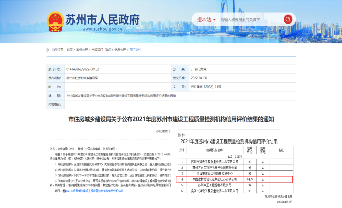 中國(guó)建材檢驗(yàn)認(rèn)證集團(tuán)江蘇有限公司,隸屬于國(guó)檢集團(tuán),總部位于蘇州工業(yè)園區(qū)和順路1號(hào),于2005年11月16日成立,試驗(yàn)室面積約11000平方。