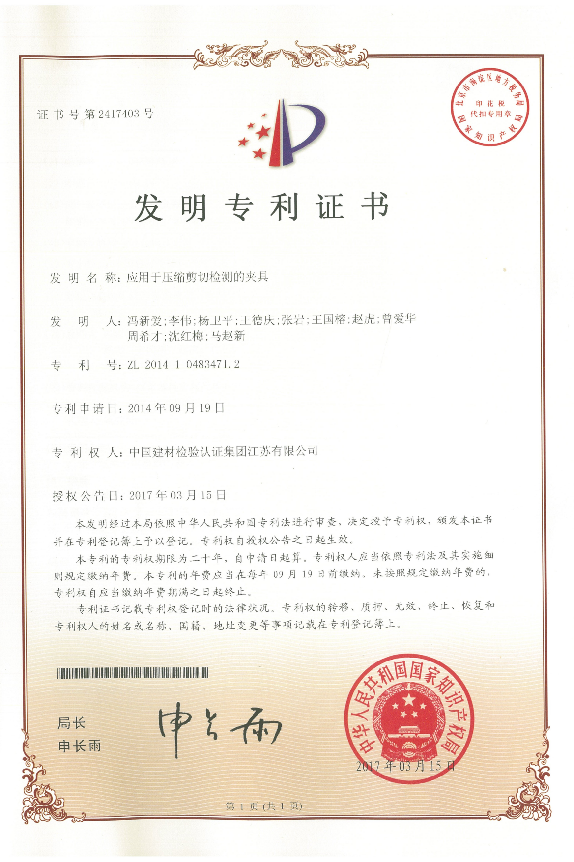 專(zhuān)利權(quán)人:中國(guó)建材檢驗(yàn)認(rèn)證集團(tuán)江蘇有限公司